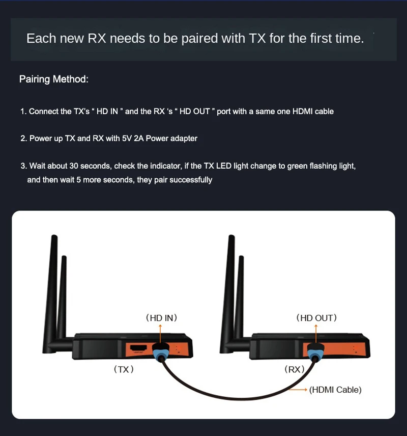 2. With the increase of RX, the wireless transmission distance will be shortened (pls use in barrier-free open space)
