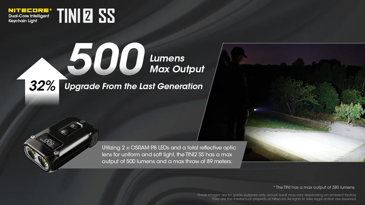 Nitecore TINI2 Flashlight 500 Lumens OLED Smart Dual-Core Key Light APC Sleep Technology Long Standby Using USB Type-C Charging